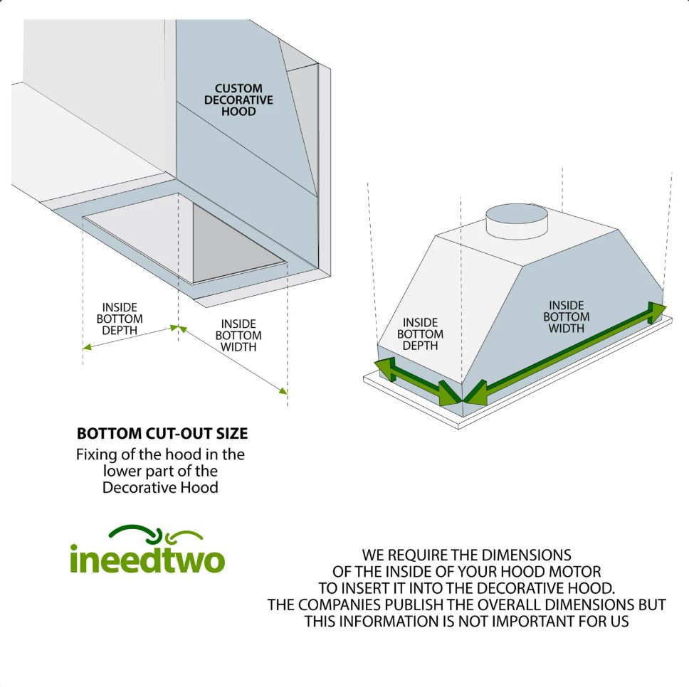 - Bottom Depth: 19" – Standard (**) (for range hoods up to 17" depth)